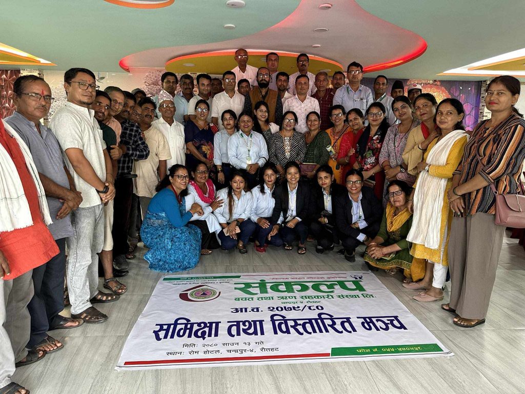 रौतहट खबर समाचारदाता÷ संकल्प साकोसले श्रावण १३ गते चन्द्रनिगाहपुरको होटल रोममा सस्थाका संचालक ,लेखा सुपरिवेक्षण समिती,सल्लाहकार ,विभिन्न उपसमिति ,कर्मचारी लगायत ६२ जनाको उपस्थितिमा सस्थाका अध्यक्ष बिभु पोखरेलको अध्यक्षतामा आ ब ०७९र८० को समिक्षा तथा बिस्तारित मंच सम्पन्न गरेको छ । ।सह सचिब चिरञ्जीवी गौतमले कार्यक्रमको सुरुमा प्रस्तावहरु राख्दै बैठक सन्चालन गर्नु भएको थियो भने आ ब को अनुमानित लक्ष्य तथा उपलब्धिलाई ब्यबस्थापक हरि प्रसाद तिमल्सिनाले स बिस्तार प्रस्तुत गर्नु भएको थियोे ।प्राप्त उपलब्धि र लक्ष्य पूरा हुन नसकेका सुचकहरुमा केन्द्रित भयर लेखा सुपरिवेक्षण समितिका संयोजक गणेश पौडेल ,पुर्व संयोजक नारायण बहादुर कार्की ,कोषाध्यक्ष बलराम गौतम ,संचालक अबधेशहरी भट्टराईले महत्त्वपूर्ण सुझाव दिदै टिप्पणी गर्नु भएको थियोे । कार्यक्रममा सदस्यहरुले उठाउनु भएको जिज्ञासालाई अध्यक्ष बिभु पोखरेल ,ब्यबस्थापक हरि प्रसाद तिमल्सिना तथा लेखा संयोजक गणेश पौडेलले प्रष्ट पार्नु भएको थियो । आजको जटिल अबस्थामा पनि संतोषजनक खाताबन्दी हुनु सुखद भएको भन्दै ब्यबस्थापन तथा संचालक लाई धन्यवाद ज्ञापन पनि गरिएको थियो ।सोही कार्यक्रममा आ ब ०८०र८१ का लागि श्रावण ६ गते संचालक समितिको बैठक बाट गठित विभिन्न उप समितिका संयोजकहरुलाइ मनोनयन पत्र तथा कार्य बिवरण प्रदान गरिएको थियो ।मनोनयन पत्र तथा कार्य बिवरण प्राप्त गर्ने उप समितिका संयोजकहरुमा ऋण उप समिति कृष्ण चन्द्र पोखरेल ,शिक्षा उप समिति शारदा भण्डारी ,बचत बिस्तार उपसमिति दिपक भण्डारी ,शेयर बिस्तार उपसमिति राज किशोर गुप्ता,सामाजिक क्रियाकलाप उपसमिति एक नाथ चौलागाईं ,सूचना तथा सञ्चार उप समिति बिदुर न्यौपाने ,महिला बिकास उपसमिति गोमा चौलागाईं ,नीति निर्देशिका उपसमिति कुल बहादुर थापा ,प्रोबेशन कार्यदल चिरञ्जीवी गौतम ,जोखिम ब्यबस्थापन कार्यदल बलराम प्रसाद गौतम हुनुहुन्थ्यो ।उप समितिको तर्फबाट उपाध्यक्ष तथा ऋण उपसमिति संयोजक कृष्ण चन्द्र पोखरेलले समितिले प्रदान गरेको जिम्मेवारीलाई इमान्दारिपुर्वक कार्यन्वयन गर्ने प्रतिबद्धता ब्यक्त गर्नु भएको थियो ।संकल्प साकोसले आफ्नो क्यालेन्डर अनुसार नै नियमित बैठक ,बिस्तारित मंच ,साधारणसभा सन्चालन गर्दै आयको छ ।यिनै गतिविधिका कारणले गत आ ब मा नेफ्स्कुनले मधेस प्रदेशको उत्कृष्ट सस्थाको रुपमा सम्मान गरेको थियो ।