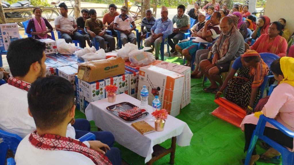 रौतहट÷रौतहटको चन्द्रपुर नगरपालिका वडा नं. २ मा रहेको श्री सदावहार महिला कृषि सहकारी संस्था लिमिटेडले मंगलवार कृषिमा आवश्यक विभिन्न सामाग्रीहरु वितरण गरेको छ । चन्द्रपुर नगरपालिकाको कृषि विकास शाखाको आर्थिक बर्ष २०८०÷०८१ को सशर्त तर्फको मकै बाली प्रबद्र्धन कार्यक्रम(५० प्रतिशत) अनुदान अन्तर्गत वडा नं. २ का किसानहरुलाई मकैको वीउ,विद्युतीय स्प्रे टंकी, त्रिपाल, मकै रोप्ने मेसिन, डेलिभरी पाइप र स्यालो ट्युवेल रहेका थिए । वितरण कार्यक्रममा प्रमुख अतिथी वडा नं. २ वडा कार्यालयका वडा सदस्य संजीव कुमार कुस्वार माझी रहनु भएको थियो भने विशिष्ट अतिथीमा चन्द्रपुर नगरपालिका कृषि विकास शाखा प्रमुख संदीप देवकोटा रहनु भएको थियो । कार्यक्रममा कृषि प्राविधिक रुपेश सापकोटा,स्थानीय कुलराज उप्रेती लगायतको उपस्थिति रहेको थियो । वितरण कार्यक्रममा मन्तव्य राख्नुहुदै वडा सदस्य संजीव कुमार कुस्वार माझीले किसानलाई अति नै आवश्यक सामाग्रीको पहिचान गरी नगरपालिकाले शसर्त अनुदान सहित किसानहरुलाई कृषि सामाग्री उपलब्ध गराएकोमा खुसी व्यक्त गर्नुभयो । उहाले किसानले प्राप्त गरेको कृषि उपकरण, सामाग्रीलाई प्रयोग गरेर उब्जनी बढाउन आग्रह समेत गर्नुभयो । कृषि खेती आधुनिकिकरण तर्फ अगाडि बढेको अवस्थामा अव कृषि उपकरणको प्रयोग गरी उब्जनी बढाउने तथा समयको बचत गर्न तर्फ किसानहरुलाई सहकारीले अभिप्रेरित गर्नुपर्ने बताउनुभयो । कार्यक्रममा कृषि विकास शाखा प्रमुख संदीप देवकोटाले वडाभरीका किसानहरुलाई समेटेर सहकारीले गरेको कामका उच्च प्रशंसा गर्नुहुदै किसानहरुको समस्यालाई सम्बन्धित निकायसम्म पु¥याउने कामको लागि पनि सहकारीले पुलको काम गर्न आग्रह गर्नुभयो । उक्त कार्यक्रम अन्तर्गत स्यालो ट्युवेल जडान ५ थान( ८५ प्रतिशत अनुदान), त्रिपाल ४० थान, स्प्रे टंकी २५ थान, मकै रोप्ने मेसिन २ थान, डेलिभरी पाइप ३० किलो, मकैको विउ ५ सय किलो वितरण गरिएको सदावहार महिला कृषि सहकारी संस्था लिमिटेडका अध्यक्ष सन्जु कुस्वारले जानकारी दिनुभयो । अध्यक्ष कुस्वारले अझै पनि किसानहरुको माग अनुसारको सामानहरु अपुग भएकोले आगामी दिनमा नगरपालिकासंग समन्वय गरेर वितरणको लागि पहल गर्ने बताउनुभयो । कार्यक्रम संस्थाकाका अध्यक्ष सन्जु कुस्वारको अध्यक्षतामा सम्पन्न भएको थियो ।