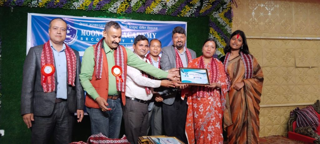 रौतहट÷ रौतहटको चन्द्रपुरमा रहेको मुनलाइट एकाडेमीले शनिवार अभिभावक सम्मान तथा शुभकामना आदान प्रदान कार्यक्रम सम्पन्न गरेको छ । मुनलाइटले आफ्नो १८ औं एसइइ ब्याचमा सम्मिलित विद्यार्थीहरुको अभिभावकलाई सम्मान तथा विद्यार्थीहरुवीच शुभकामना आदान प्रदान कार्यक्रमको आयोजना गरि अभिभावक,विद्यार्थी र विद्यालय परिवारप्रति सामिप्यता बढाएको छ । उक्त कार्यक्रममा प्रमुख अतिथी चन्द्रपुर नगरपालिका शिक्षा शाखाका प्रमुख दिपेन्द्र मण्डलले रौतहटको शैक्षिक क्षेत्रको एक नक्षेत्र मुनलाइट एकाडेमी रहेको बताउनुभयो । उहाले शिक्षा भनेको अध्ययनमात्र होइन, विद्यार्थीहरुको सर्वा·िण विकास भएकोले मुनलाइटले अंगालेको शिक्षाको परिष्कृत गतिविधिले परिणाम पनि अरु विद्यालयको भन्दा फरक रहने बताउनुभयो । शिक्षाको लागि आवश्यक हरेक अंगलाई चुस्त दुरुस्त राख्न सकेकै कारण मधेश प्रदेशमा मुनलाइटको नाम अगाडि रहेको बताउनुभयो । शिक्षा शाखा प्रमुख मण्डलले भर्खरै सम्पन्न एसइइ परिक्षामा चन्द्रपुर नगरपालिका क्षेत्र भित्र रहेका ६ वटा परीक्षा केन्द्र मध्ये जनजागृति माध्यमिक विद्यालय सिन्दुरेघारी परिक्षाकेन्द्र सवैभन्दा अनुशासित,मोबाइल प्रवेश निषेध रहेको पाइएको बताउनुहुदै विद्यार्थीहरुलाई हरेक किसिमको शिक्षा दिन सके परिणामको डर मान्नु पर्दैन भन्ने उदाहरण मुनलाइटको विगतको परिणामले प्रष्ट पारेको बताउनुभयो । कार्यक्रममा विद्यालयका संचालक तथा स्कुल कोर्डिनेटर हरि कोइरालाले मुनलाइट एकाडेमीको विगत र वर्तमान शैक्षिक अवस्थाका बारेमा जानकारी गराउनुभयो । उहाले मुनलाइट एकाडेमीमै आफ्ना नानीबाबु किन पढाउने ? भन्ने बारेमा तथ्य सहित प्रष्ट पार्नुभयो । विद्यालयको नारा “आमाको काख पछि अर्काे पाठशाला मुनलाइट” ले पनि विद्यालयले विद्यार्थीहरुको सुरक्षा, शैक्षिक अवस्था, मानसिक अवस्था, खेलकुद, अनुशासनलाई पहिलो प्राथमिकता राखेर काम गरेकै कारण आज देशको प्रतिष्ठित डाक्टर, इन्जिनियर, प्रोफेसर, बैकर्स हुन सफल रहेकै कारण अहिले यस क्षेत्रका अभिभावकहरुको रोजाइमा पर्न सफल रहेको बताउनुभयो । विगत ११ बर्षदेखि मुनलाइट एकाडेमीले+२ मा व्यवस्थापन संकायको अध्ययन शुरु गरेर जिल्लामै उत्कृष्ट नतिजा दिन सफल भएको बताउनुहुदै उहाले विद्यार्थीको लगन, शिक्षकको मेहनत र विद्यालयको असल व्यवस्थापनले नतिजा निकाल्न सजिलो भएको बताउनुभयो । विद्यालयले पछिल्लो समयमा होटल व्यवस्थापनको अध्यापन समेत शुरु गरेकोले अव कम लगानीमा गुणस्तरीय शिक्षाका लागि बाहिर धाउनुपर्ने बाध्यता हटेको बताउनुभयो । कार्यक्रममा विद्यालय संचालक समितिका सदस्य नवराज अधिकारी, विद्यालय निर्देशक विकिज घिमिरे, संचालक संगम घिमिर