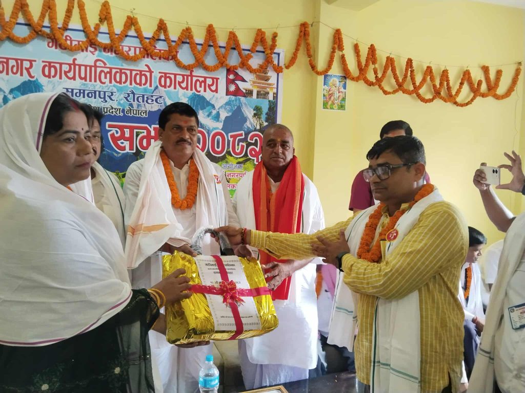 रौतहट, ७ असार÷रौतहटको गढीमाई नगरपालिकाको १२ औं नगर सभा–२०८२ शनिवार सम्पन्न गरेको छ । गढीमाई नगरपालिकाको समनपुर स्थित कार्यपालिका भवनमा आज विहान कार्यक्रममा प्रमुख अतिथी जिल्ला समन्वय समितिका सभापति रामअयोध्या यादवले ब्यानर पढेर उदघाटन गर्नुभयो । आर्थीक बर्ष २०८२ ÷ २०८३ को विनियोजन गरिएको बजेट प्रस्तुत गर्दै नगरप्रमुख श्यामप्रसाद यादवले ५४ करोड ९१ लाख ७२ हजार १०८ रुपैया बराबरको बजेट घोषणा गर्नुभयो । नगरप्रमुख यादवले घोषणा गरिएको उक्त बजेटमा समानीकरण अनुदान (संघिय सरकार) तर्फ ११ करोड २१ लाख, सशर्त अनुदान (संघिय सरकार) तर्फ २५ करोड ५७ लाख, राजस्व बाँडफाँड (संघिय सरकार) तर्फ १० करोड ८७ लाख ६५ हजार १ सय ८ रुपैया विनियोजन गरिएको बताउनुभयो ।