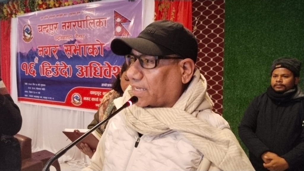 रौतहट,२५ पुस÷ चन्द्रपुर नगरपालिकाको १६औं हिउदे अधिवेशन भव्य रुपमा सम्पन्न भएको छ । हिउदे अधिवेशनको शुक्रबार चन्द्रपुरस्थित गोल्डेन ब्यान्क्वेटमा प्रमुख अतिथी विघटित प्रतिनिधिसभा सदस्य देवप्रसाद तिमल्सिना, चन्द्रपुर नगरपालिकाका नगरप्रमुख तथा सभाध्यक्ष सञ्जय काफ्ले र नगरपालिकाका उपप्रमुख जयमाला कुमारी चौधरीले संयुक्त रूपमा उदघाटन गर्नुभएको थियो । उदघाटन कार्यक्रममा शुभकामना मन्तव्य राख्नुहुदै प्रमुख अतिथी विघटित प्रतिनिधिसभा सदस्य देवप्रसाद तिमल्सिनाले स्थानीय तहले जनताको जीवनस्तर उकास्न तथा न्यूनतम आवश्यकता परिपुर्तिको लागि काम गर्नुपर्ने बताउनुभयो । उहाले तीन तहको सरकारमा जनता दैनिक रुपमा स्थानीयतहसंग जोडिएकाले उनीहरुको समस्या मसिनो रुपमा स्थानीय तहलाई नै जानकारी हुने भएकोले पनि स्थानीयतहले सवैको साथ र सहयोगमा काम गर्नुपर्ने बताउनुभयो । विकास निर्माण, सुशासन र पारदर्शितालाई प्राथमिकतामा राखेर अघि बढेमा मात्र समृद्ध नगर निर्माण सम्भव हुने उहाको भनाइ थियो । माननीय तिमल्सिनाले जनताका झुपडीमा सेवा,सुविधा पुगे नगर समृद्ध हुने भएकोले झुपडीसम्म सेवा पु¥याउन आग्रह गर्नुभयो । शुभकामना मन्तव्य राख्नुहुदै नेपाल पत्रकार महासंघका पुर्व केन्द्रिय सदस्य तथा कान्तिपुर दैनिकका उपसम्पादक, बरिष्ठ पत्रकार शिव पुरीले जनताले दिएको मतको कदर गर्ने जनप्रनिधि सधै जनताकै मन,मुटुमा रहने बताउनुहुदै जनताको मतको कदर गर्ने जनप्रतिनिधिहरु आगामी दिनमा जनताको दैलोमा पुग्न सोच्नुपर्ने अवस्था आउन सक्ने तर्फ सचेत गराउनुभयो । उहाले नगरसभामार्फत पारित हुने नीति तथा कार्यक्रमहरू जनमुखी, व्यवहारिक र दीर्घकालीन रुपमा कार्यान्वयन हुनुपर्नेमा जोड दिदै शिक्षा, स्वास्थ्य, महिला, बालबालिका तथा विपन्न वर्गको सशक्तीकरणमा विशेष ध्यान दिन आग्रह गर्नुभयो ।
