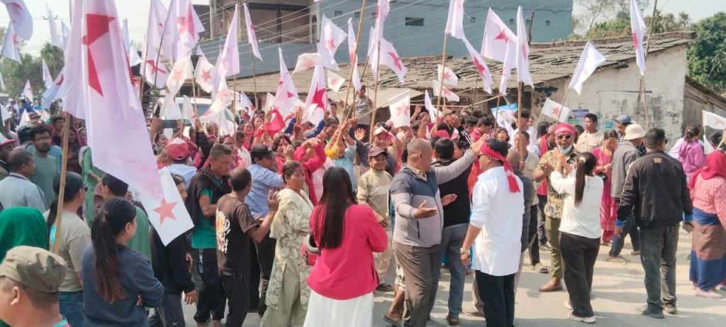 रौतहट,१० फागुन÷ नेपाली कम्युनिष्ट पार्टी रौतहट क्षेत्र नं. ४ का उम्म्ेदवार राम कुमार भट्ट्राई आज विहानैदेखि चन्द्रपुर नगरपालिका वडा नं. २ मा घरदैलोमा व्यस्त रहनु भएको छ । आज विहानैदेखि बनटोलबाट शुरु भएको घरदैलो कार्यक्रम दिनभर वडाको विभिन्न गाउ÷बस्ती पुगेर अन्तिममा वनटोलमै पुगेर समापन भएको थियो । हजारौको संख्यामा सहभागी पार्टीका नेता,कार्यकर्ता एवमु शुभचिन्तकले उम्मेदवार भट्टराईलाई जीतको अग्रीम शुभकामना दिएका थिए । घरदैलोमा देखिएको विशाल सहभागिताले उम्मेदवार भट्टराई पनि मख्ख भएका थिए । विभिन्न स्थानमा उम्मेदवार भट्टराईलाई भव्य रुपमा स्वागत गरेका थिए । सो अवसरमा उम्मेदवार भट्टराईले संविधान निर्माणको अनुभवलाई संविधानको प्रभावकारी कार्यान्वयनमा उपयोग गरी संघीय लोकतान्त्रिक गणतन्त्रको रक्षा गर्दै संघीयता कार्यान्वयनको पक्षमा विद्यायकी भूमिका निर्वाह गर्नका लागि पनि आफुलाई मतदान गर्न आग्रह गर्नुभयो ।