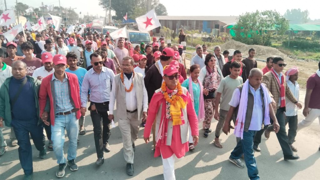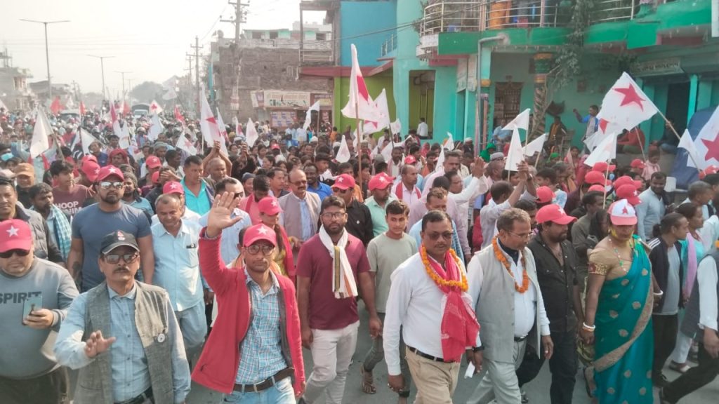 रौतहट,१७ फागुन÷ नेपाली कम्युनिष्ट पार्टी रौतहट क्षेत्र नं. ४ का उम्मेदवार राम कुमार भट्ट्राईले आइतवार चन्द्रपुर नगरपालिकाको वडा नं. ४,५ र ६ को मुख्यमुख्य सडकमा रोड शो मा सहभागिता जनाउनु भएको छ । चन्द्रपुरस्थित जिल्ला ट्राफिक कार्यालय नजिकबाट शुरु भएको रोड शो नगरको विभिन्न टोल टोलमा मतदातासंग भेटघाट गर्दै अगाडि बढेको थियो । दशौं हजारको संख्यामा कार्यकर्ताहरुको सहभागितामा भएको रोड शोमा वडा नं. ४,५ र ६ का विभिन्न टोल टोलमा पुगेर अन्त्यमा चन्द्रपुरको मुख्य चौकमा आएर कोण सभामा परिणत भएको थियो । कोणसभालाई सम्बोधन गर्नुहुदै रौतहट क्षेत्र नं. ४ बाट नेपाली कम्युनिष्ट पार्टीका उम्मेदवार राम कुमार भट्टराईले देश अहिले कंगाल बन्दै गएको अवस्थामा भ्रष्टाचारीलाई कारवाही गर्ने पार्टी नेपाली कम्युनिष्ट पार्टी भएकोले तारा चिन्हमा मतदान गर्न आग्रह गर्नु्भयो । भ्रष्टाचारीलाई कारवाही गर्ने, प्रमाणित भएपछि जेलसम्म पु¥याउन तयार रहेको बताउनुहुदै त्यसका लागि आफुलाई मतदान गर्न अनुरोध गर्नुभयो । नया भन्नेहरु ३ बर्ष सरकार चलाएर गृहमन्त्री भएको स्मरण गराउनुहुदै ३ बर्षमा भ्रष्टाचारीलाई नसमातेर बरु आफु नै सहकारी ठगीमा पक्राउ परेकोले त्यस्तालाई जनताले समयमै पहिचान गर्नुपर्नेमा जोड दिनुभयो । पुरानै चिज नया लेवल लगाएर नया नहुने प्रष्ट पार्नुहुदै उम्मेदवार भट्टराईले सोच नया भएको पार्टी नेपाली कम्युनिष्ट पार्टी रहेको बताउनुभयो । आफु ठिक नभएसम्म अरुलाई औला ठड्याउने प्रवृतिले गर्दा देश दुर्गतीमा पुगेकोले अव भ्रष्टाचारी विरुद्ध शसक्त भएर अगाडि बढ्ने आफ्नो लक्ष्य रहेकोले जनताको साथ सदैव रहने विश्वास व्यक्त गर्नुभयो । उम्मेदवार भट्टराईले शिक्षा,स्वास्थ्य,रोजगारी लगायतका विषय प्राथमिकतामा राखेर आफ्नो पार्टी चुनावमा होमिएकोले अव स्वदेशमै रोजगारीको लागि उद्योग संचालनमा जोड दिने प्रतिबद्धता व्यक्त गर्नुभयो ।